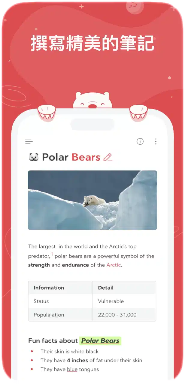 - 定價:免費下載,部分功能需訂閱 Bear Pro