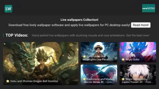 LiveWallpapers4Free is an online platform that specializes in providing free dynamic wallpapers for users to download and apply to their computer desktops.It offers wallpapers in multiple categories, such as animation, animals, fantasy and sci-fi, and supports a selection of various resolutions, including 2K, 4K, and 8K.Users can find a selected selection of popular video wallpapers as well as daily updates of the latest dynamic wallpapers on the site, many of which are dominated by anime and gaming themes.